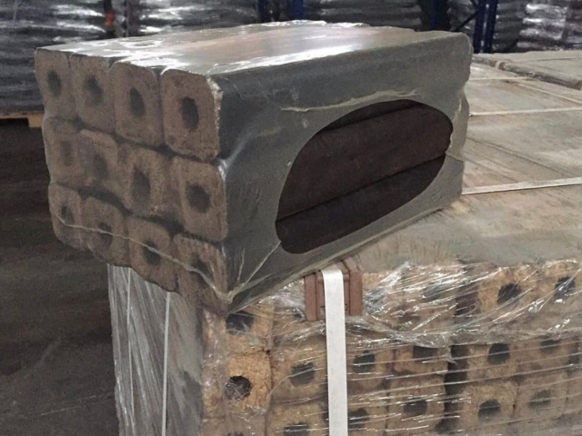 RUF pine briquettes Calorific value: 4.1 kWh/kg Moisture content: 7% to 9.8%.